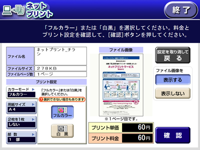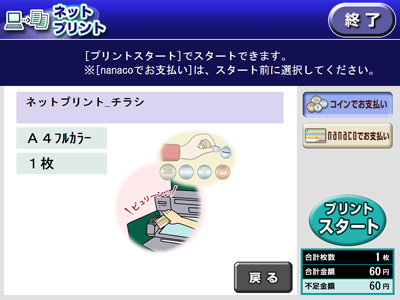|  | ゼロックス マルチ・コピー機の 操作画面で「ネットプリント」 ボタンを押します。 |